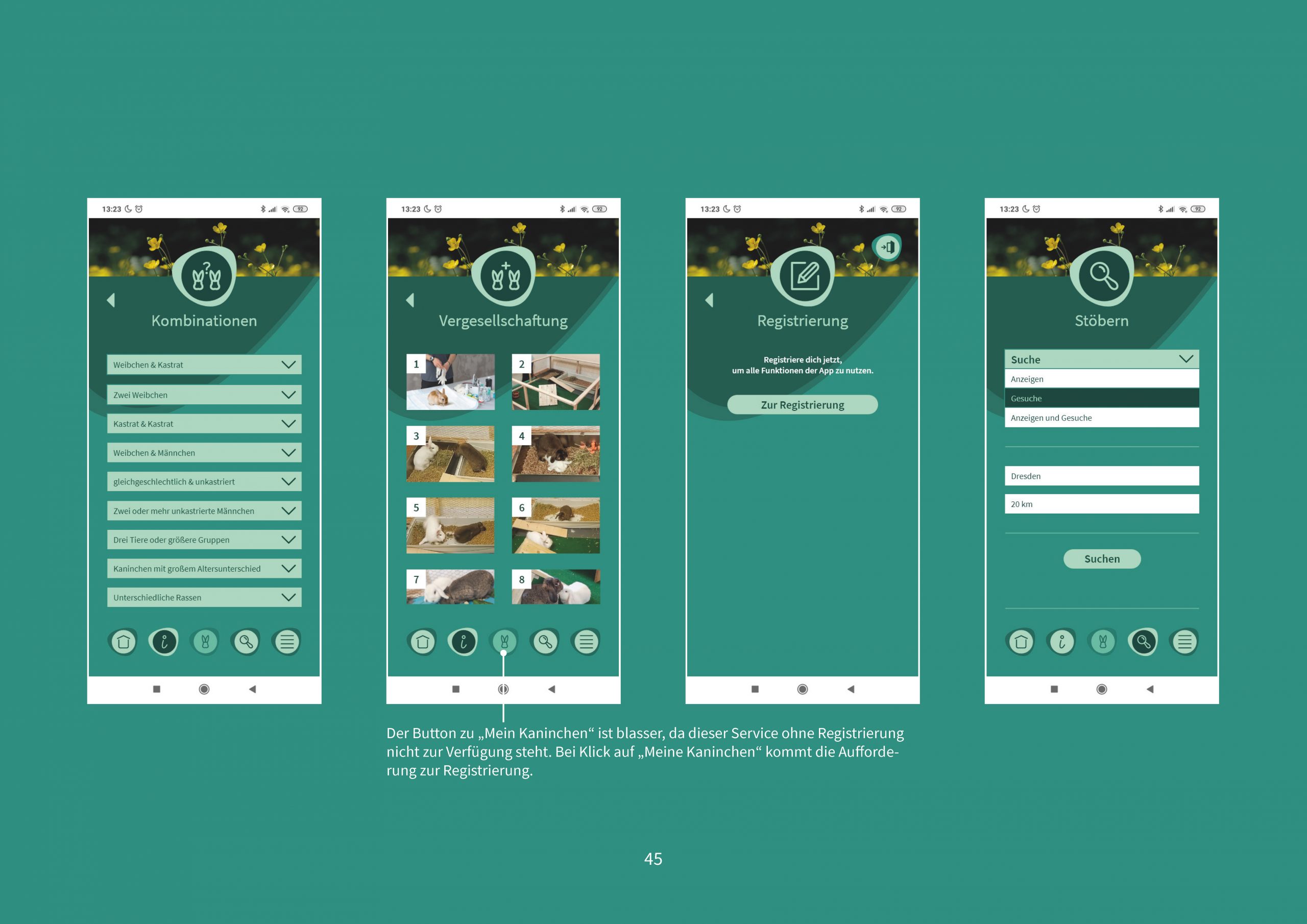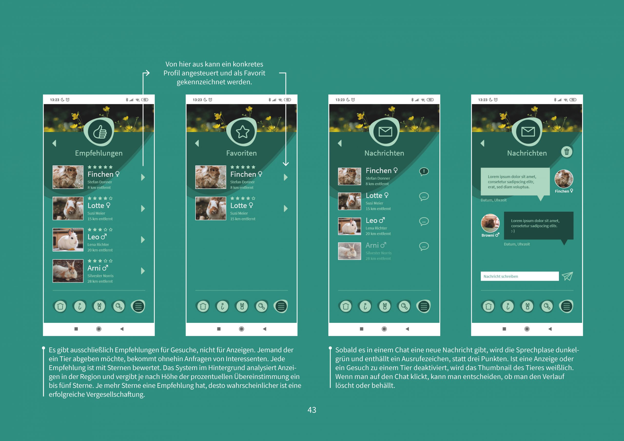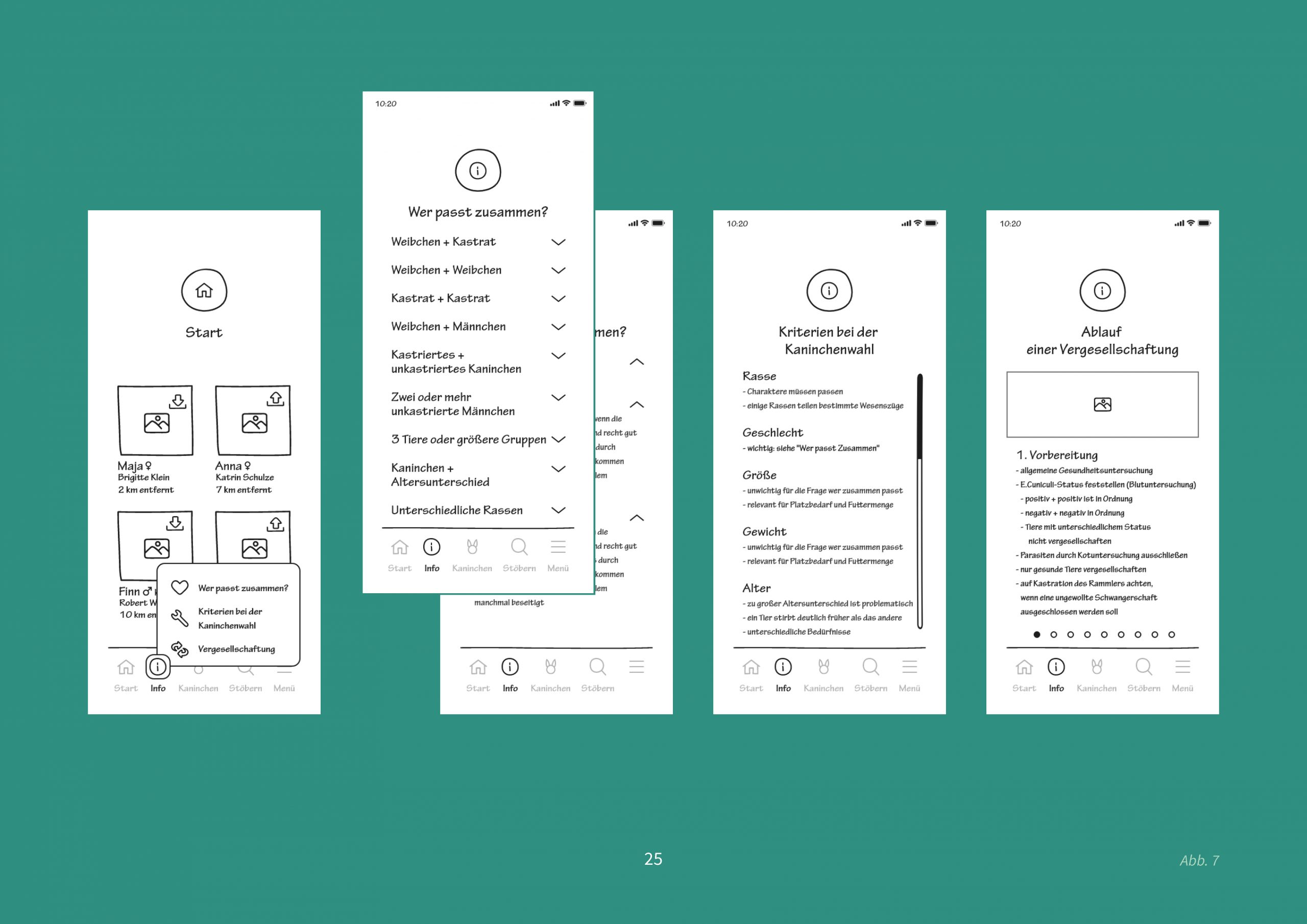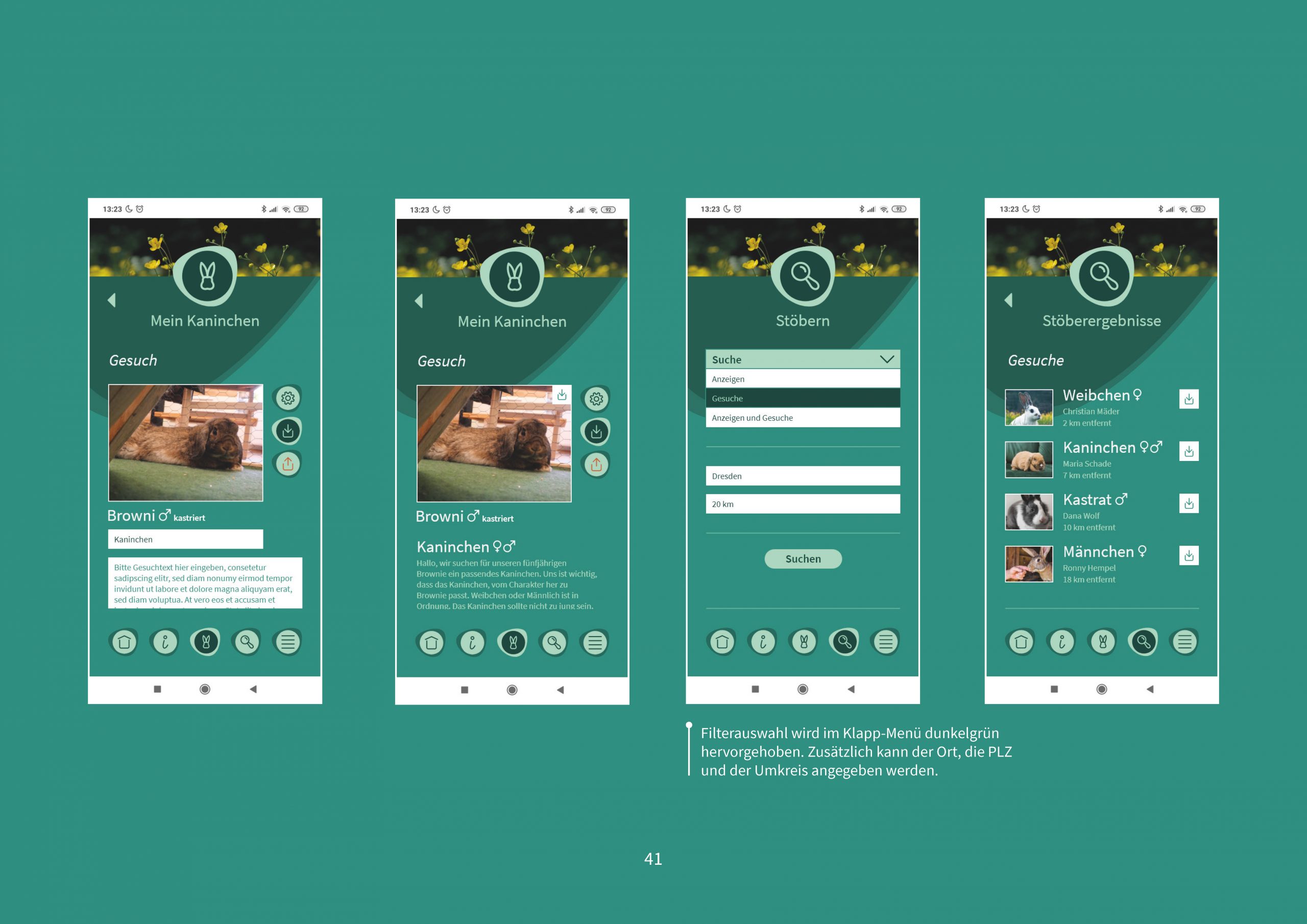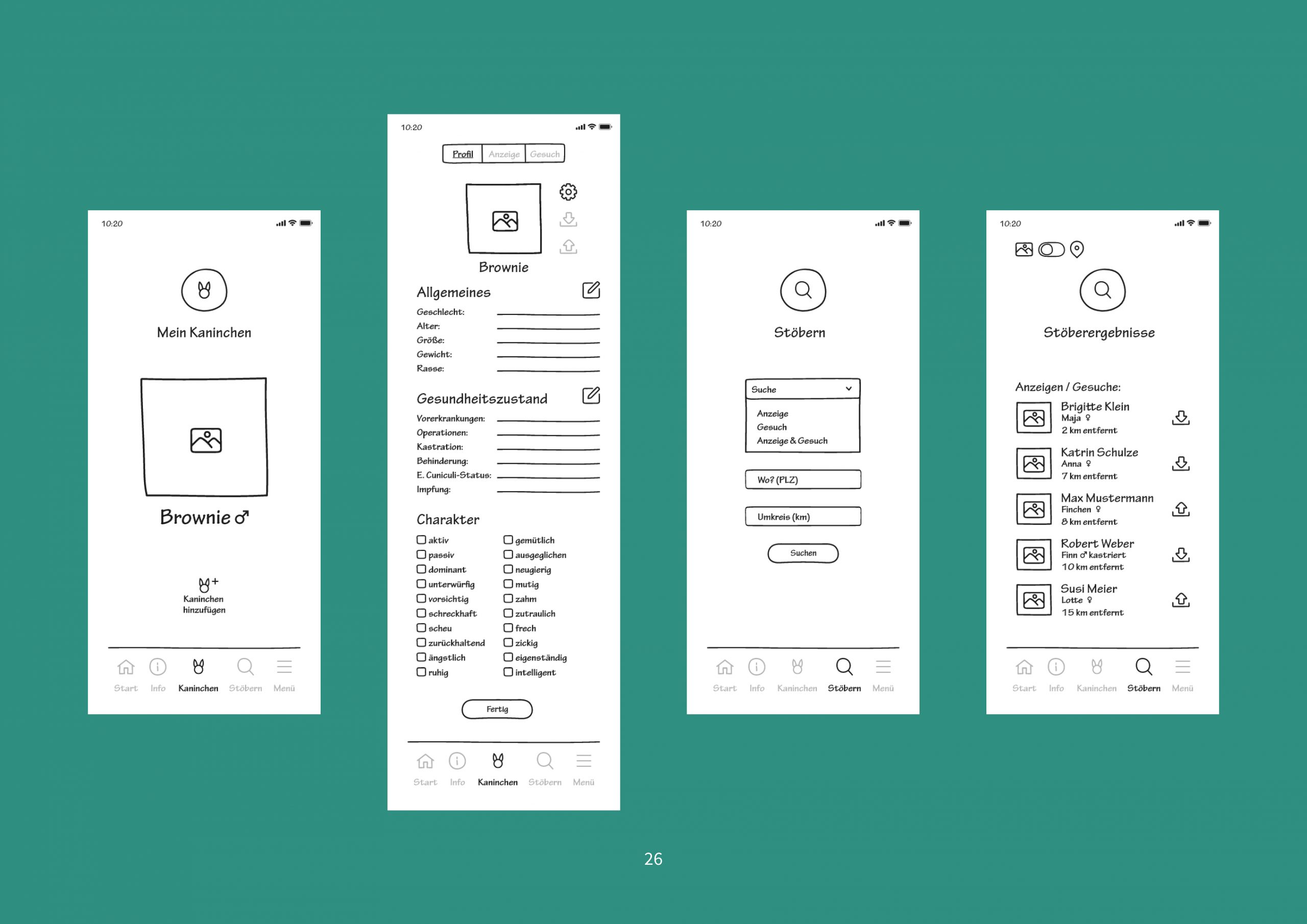 Die Aufgabe bestand in der Konzeption, dem Design und der Produktion eines Klickdummies für eine Kaninchen-Partnervermittlungs-App.
