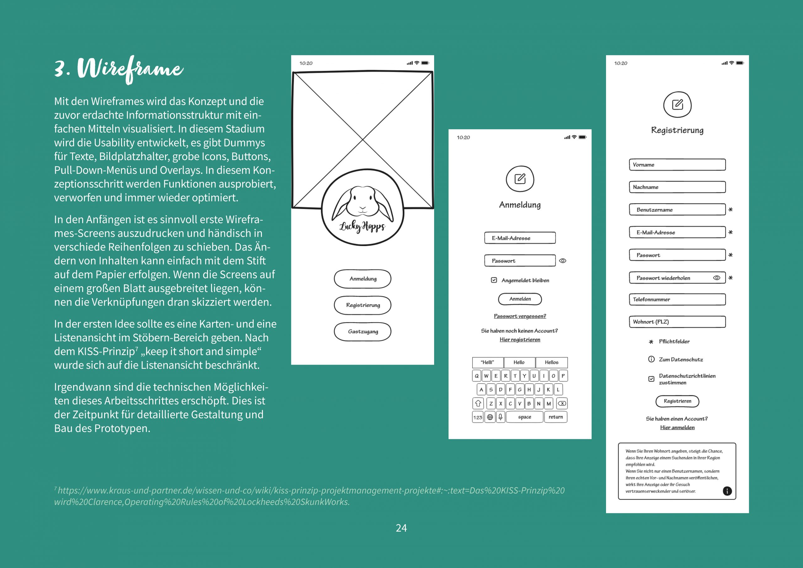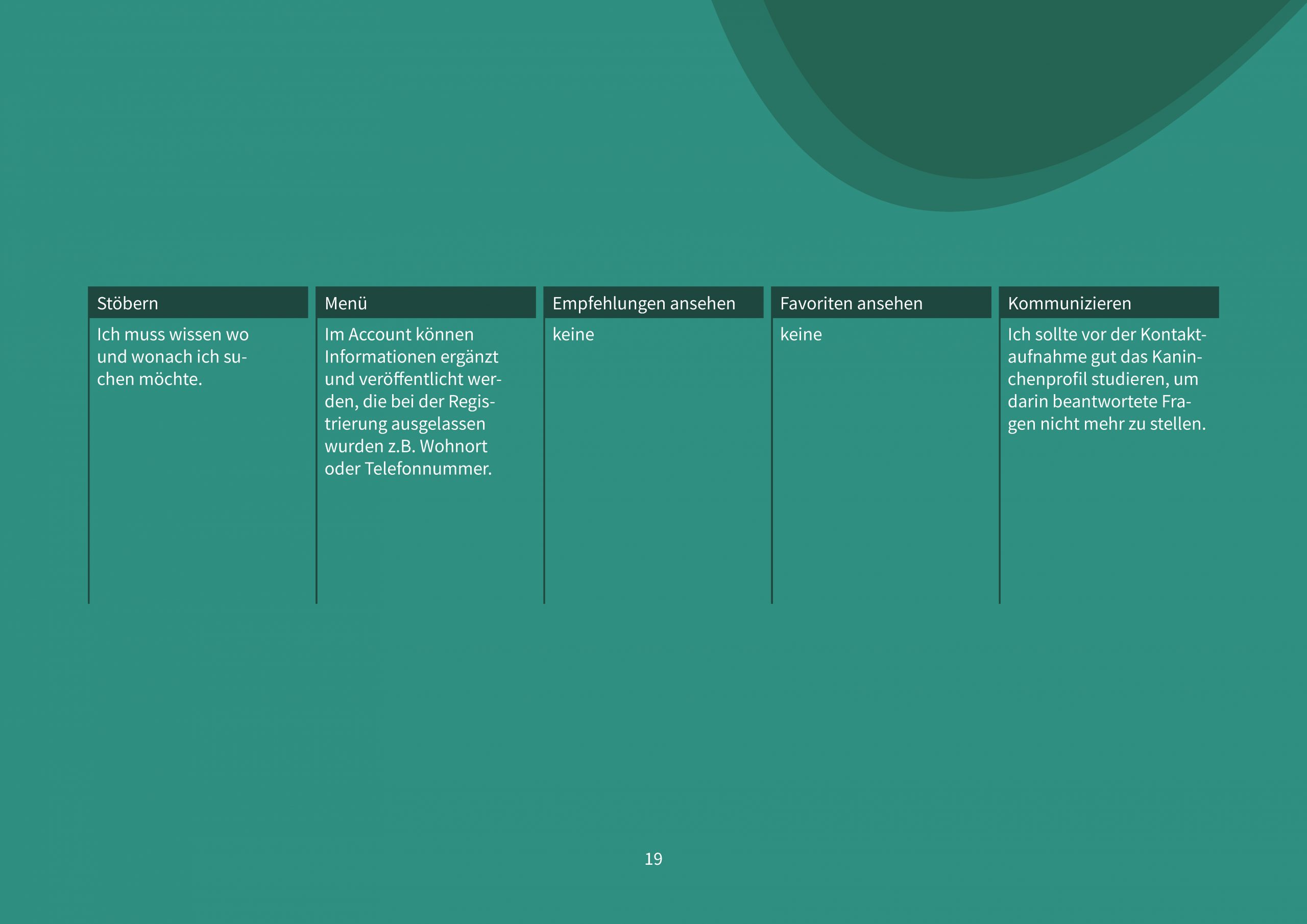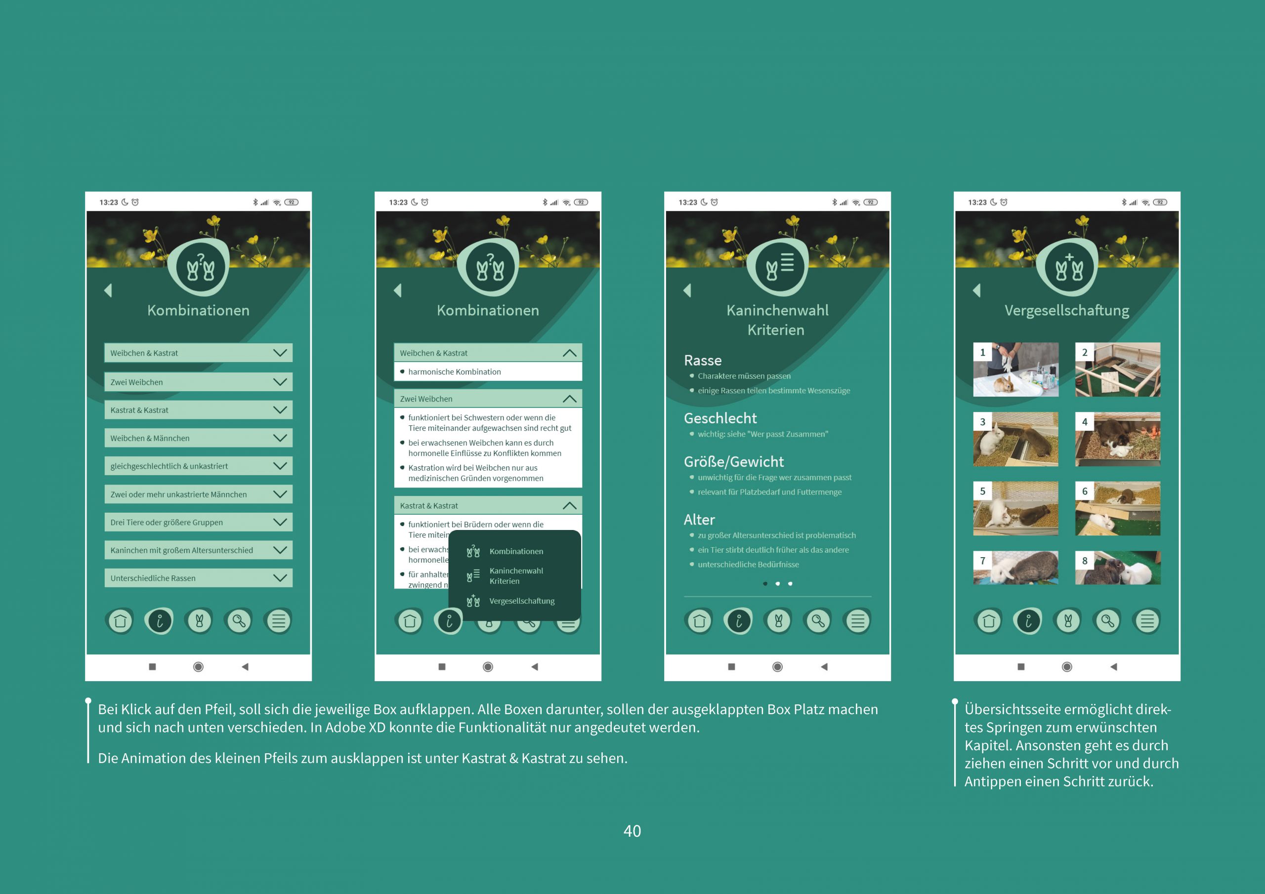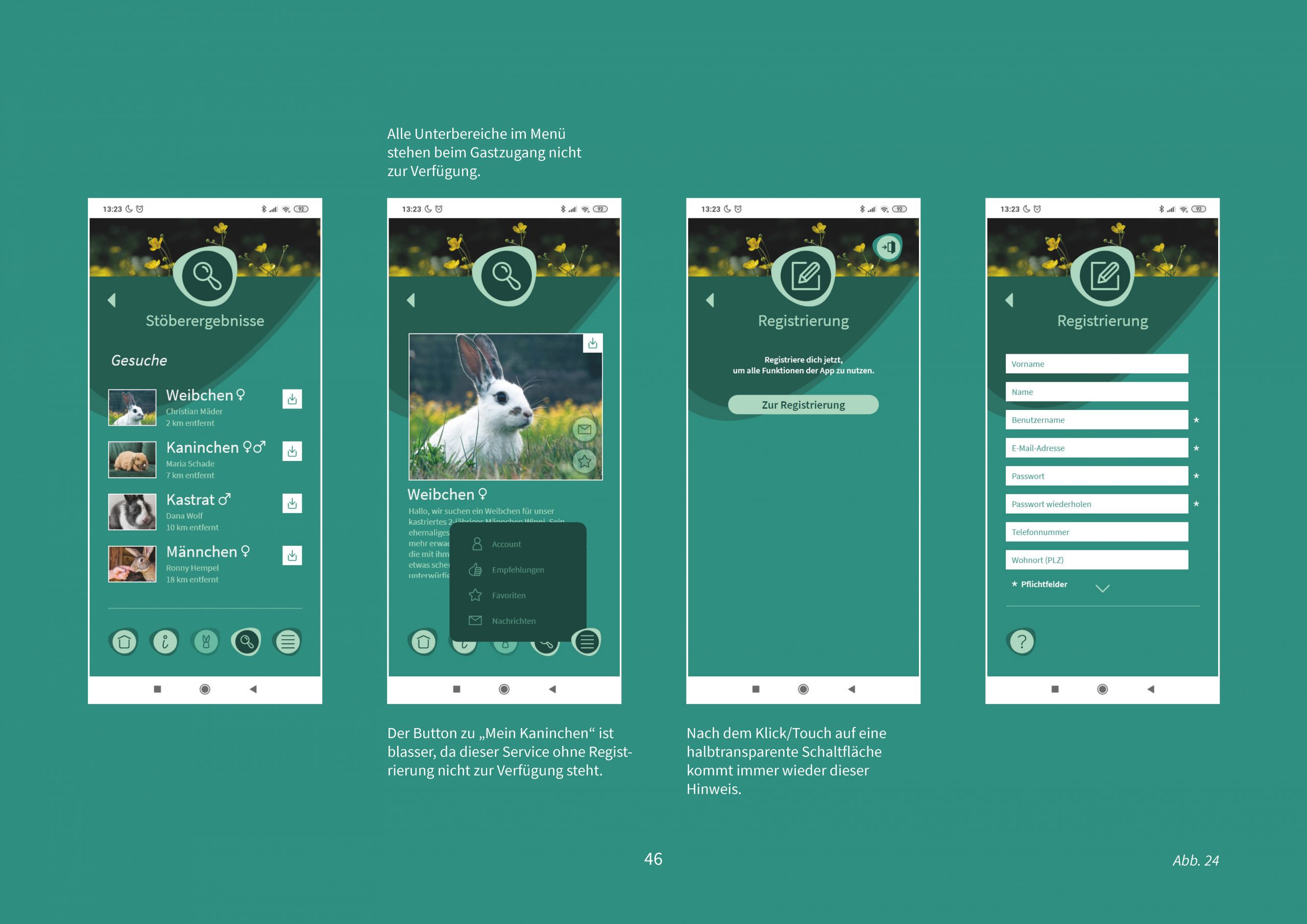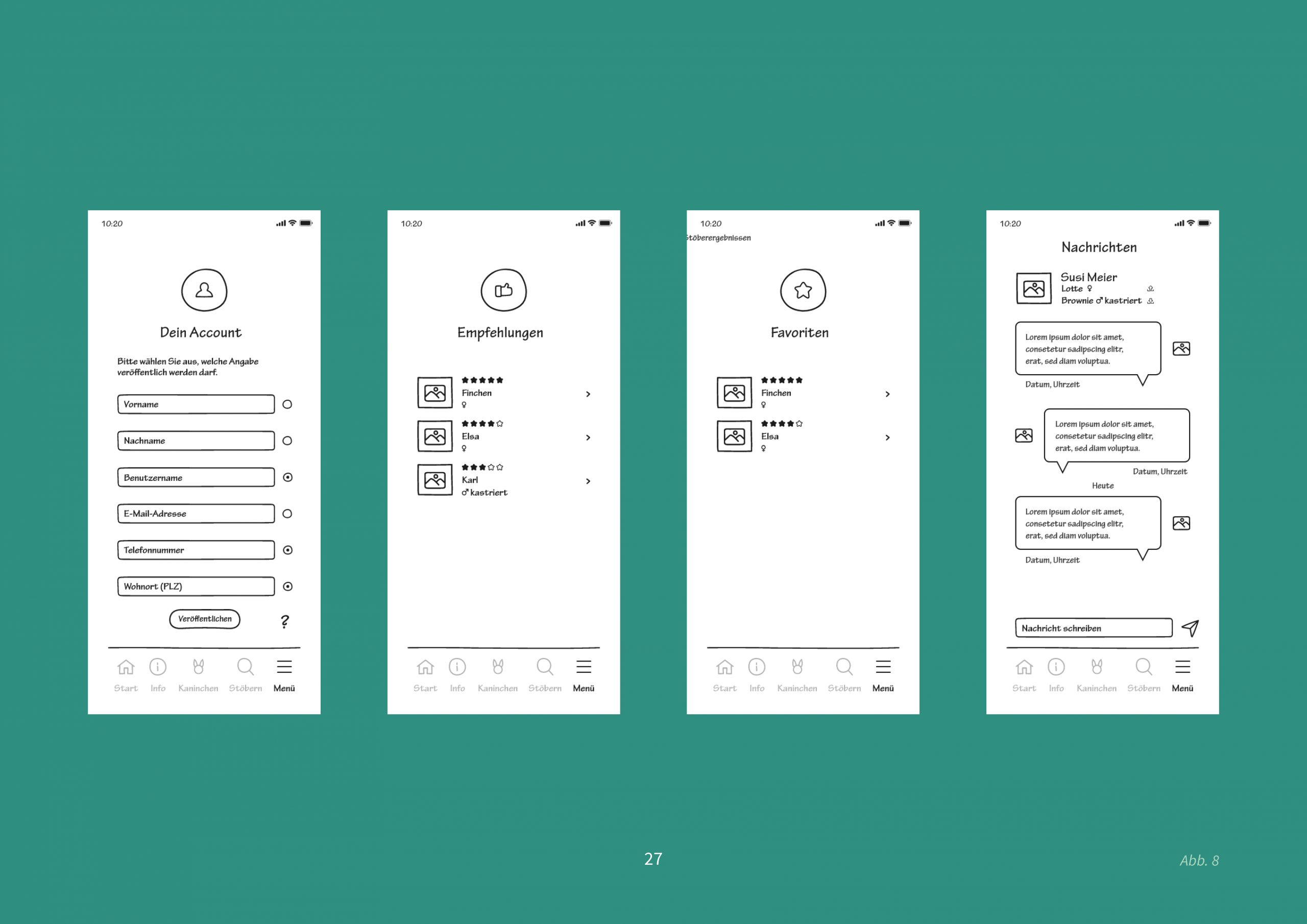Die Aufgabe bestand in der Konzeption, dem Design und der Produktion eines Klickdummies für eine Kaninchen-Partnervermittlungs-App.